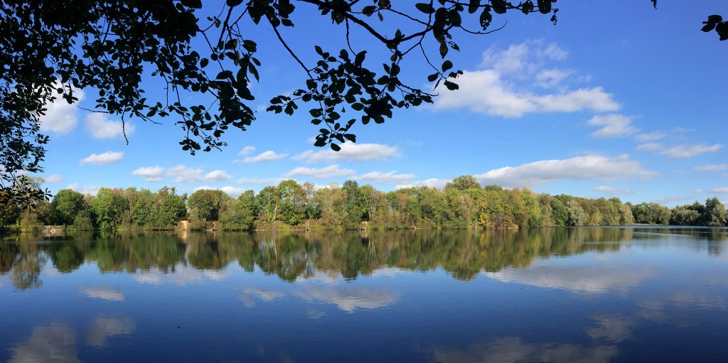 The first one was taken on a lovely sunny day in October, as I was walking around a lake in the Cotswolds. This was the beginning of Autumn, as you can see the trees showing off that slight yellow tinge. I really love the way the trees look like they’re flowing across the panorama, almost eternally frozen in the reflection on the surface of calmness, the sky and canopy at one.