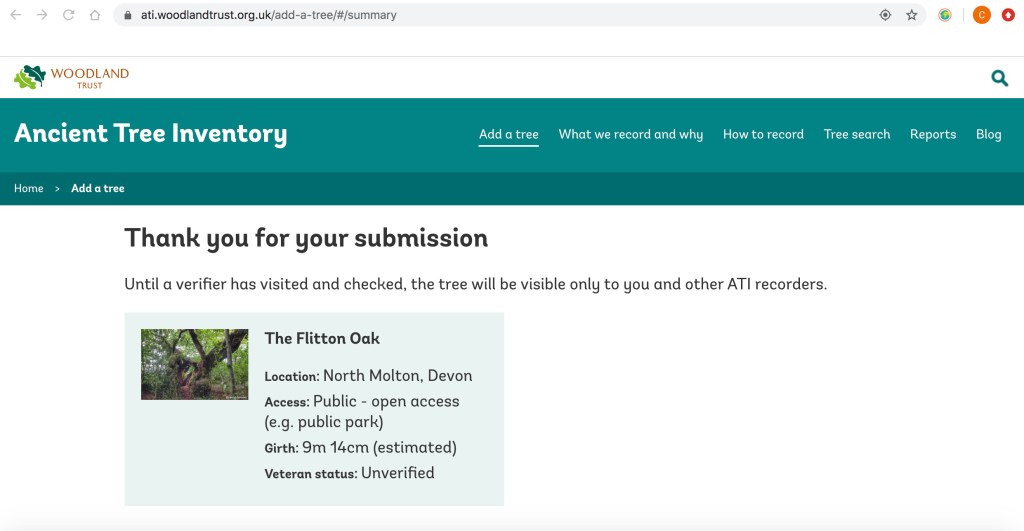 I noticed that this ancient tree is yet to be recorded in the Woodland Trust’s Ancient Tree Inventory, so with the blessing of my ranger colleague, I submitted this record to be verified.