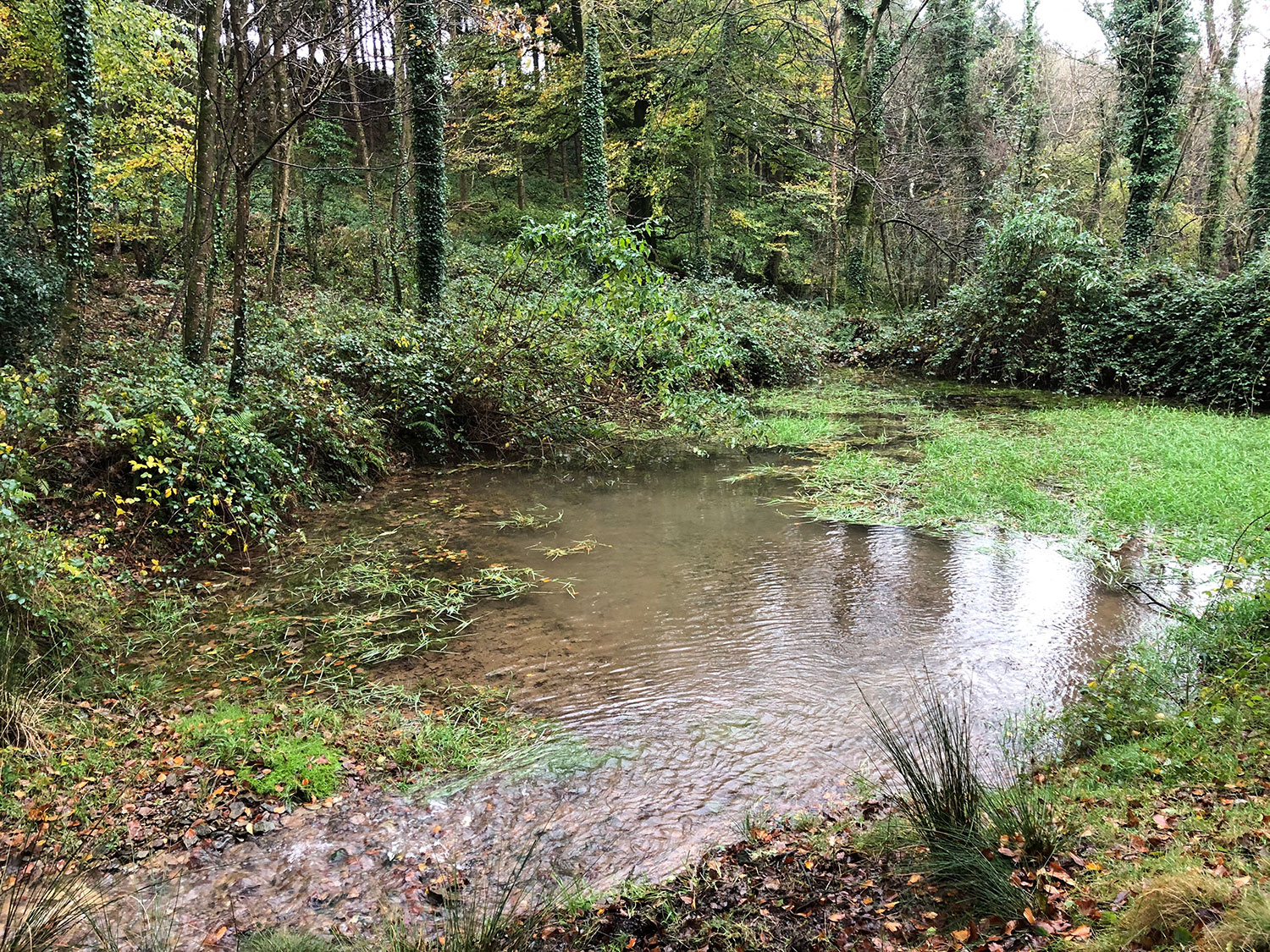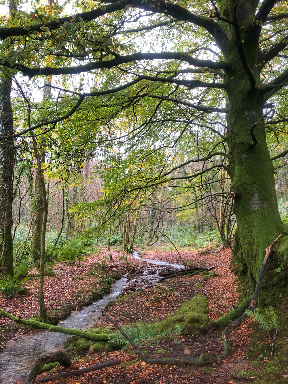 The wonderful stream that greeted us was stunningly placed. As water flowed beneath the hanging branches, we were amazed to have found this quiet spot so close to home. Magical, even on a rainy day.