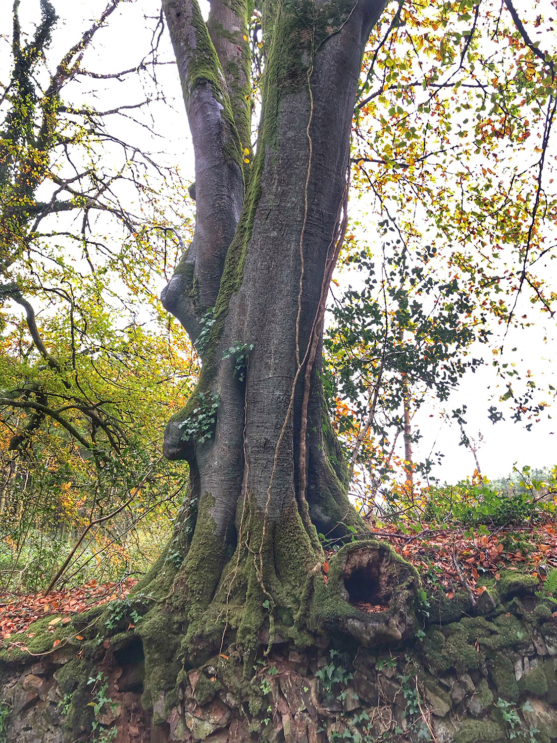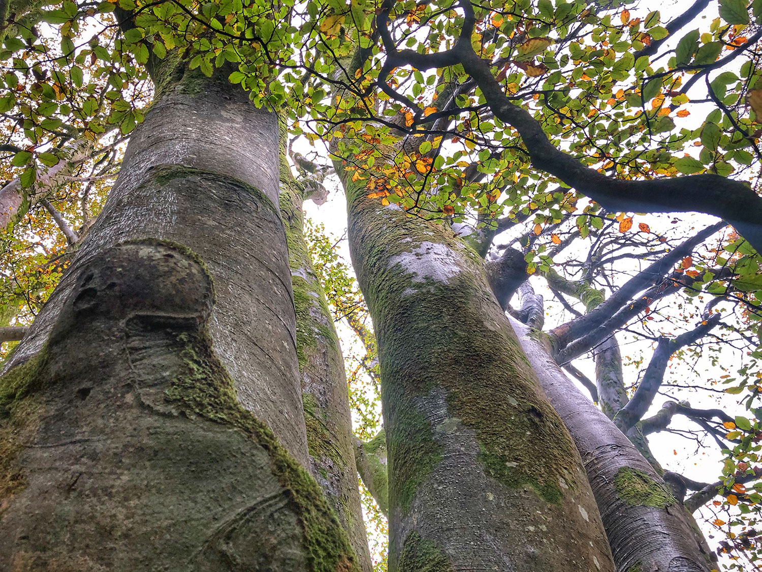 These pollarded beeches are probably the largest that I’ve ever seen! Just standing directly underneath humbled me to no end; their amazing smooth grey stems reaching up so solidly and dynamically, dwarfing me like Hans Christian Andersen’s ‘Thumbelina’. I would say these veteran beeches are at least a couple of hundred years old, if not more! I’m truly impressed.