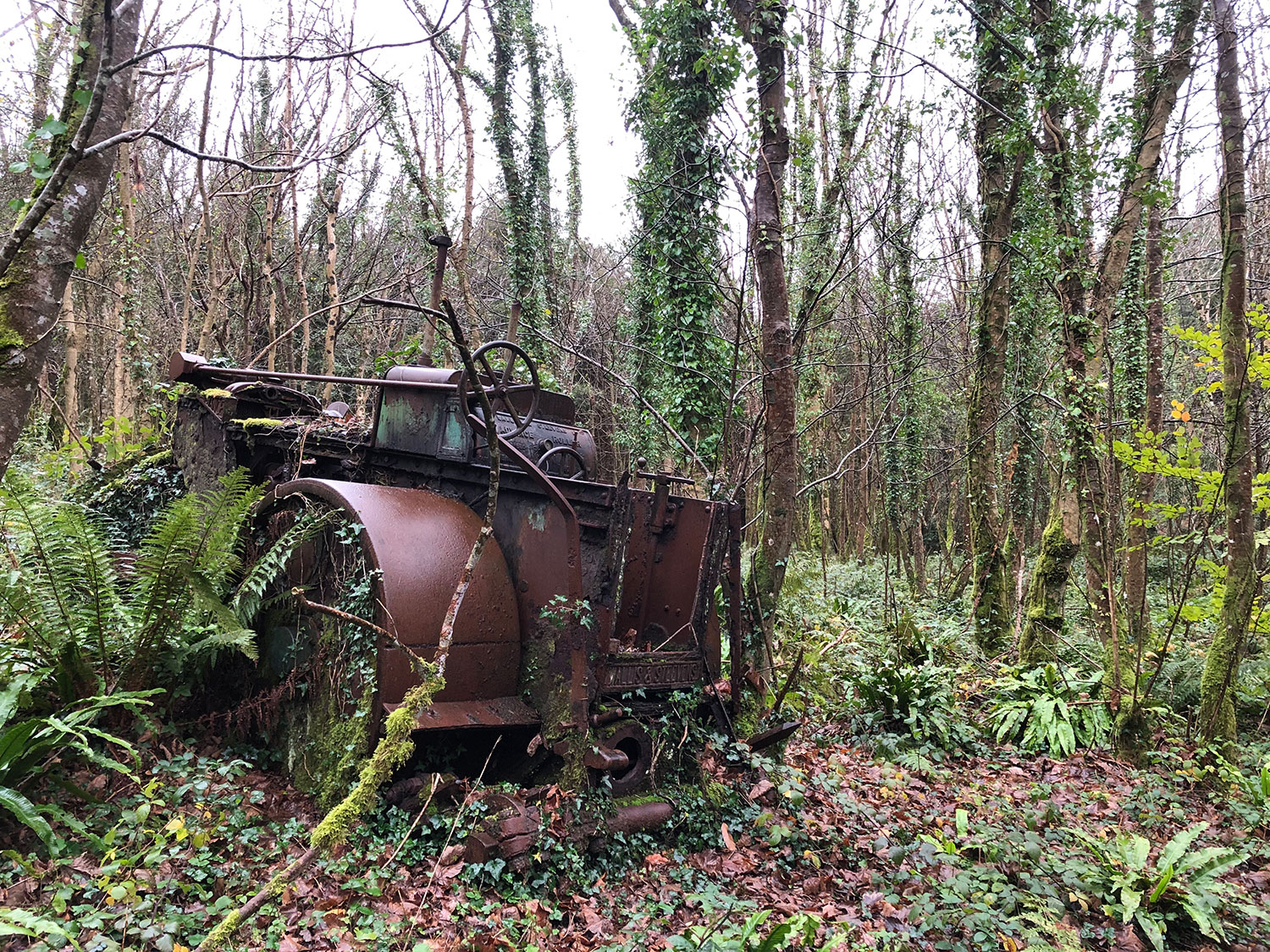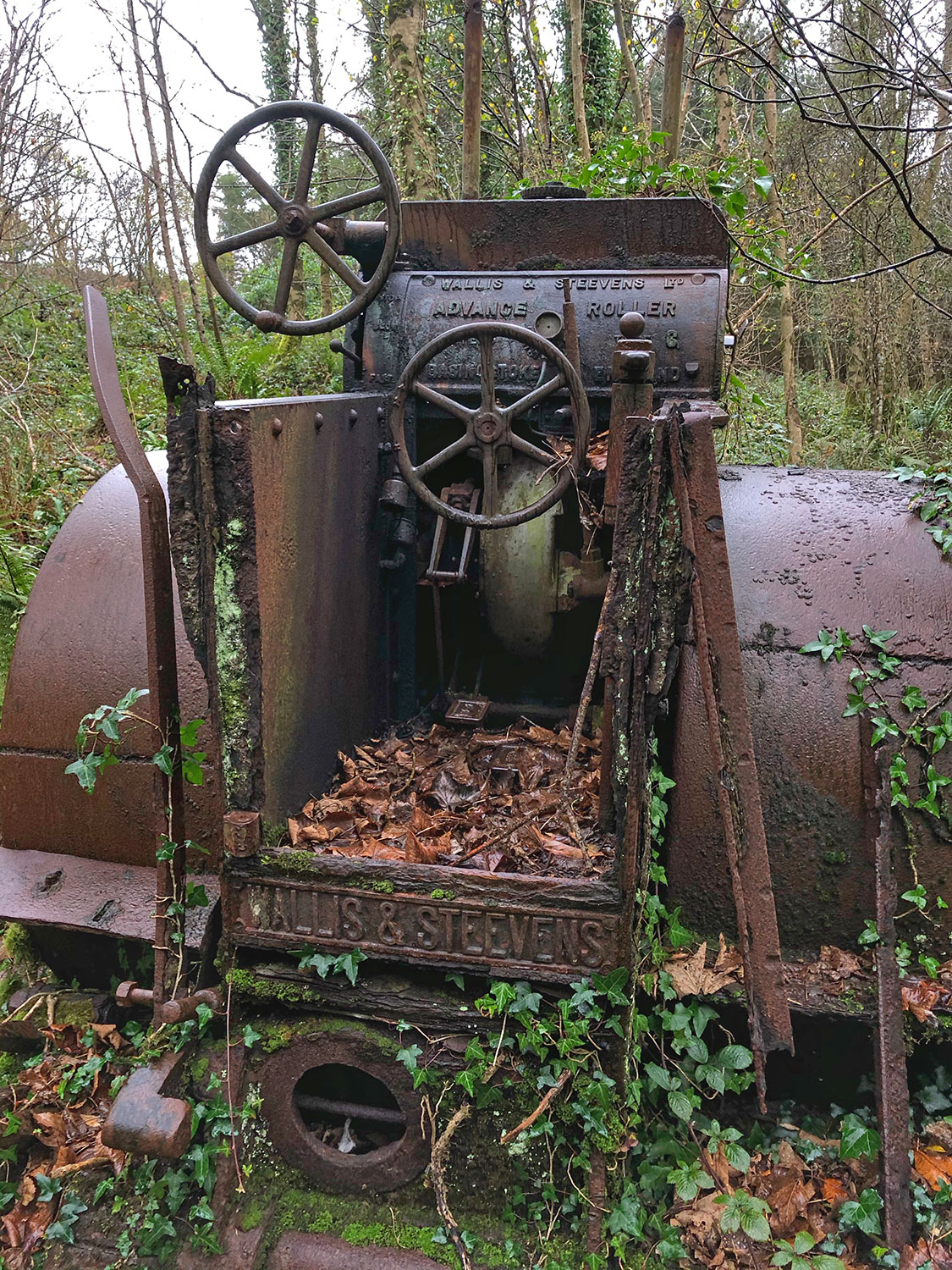 It was indeed! Or rather an old vintage steam roller taking us back in time. It had rewilded beautifully into its surroundings, with bracken and ivy creeping up around its frame, nature taking over the nooks and crannies of this metal monster. The brand ‘Wallis and Steevens Ltd’ from Basingstoke was founded in 1856, so this particular steam roller must have had quite the history and was probably left here by the estate’s owners, becoming an unintended feature of time.