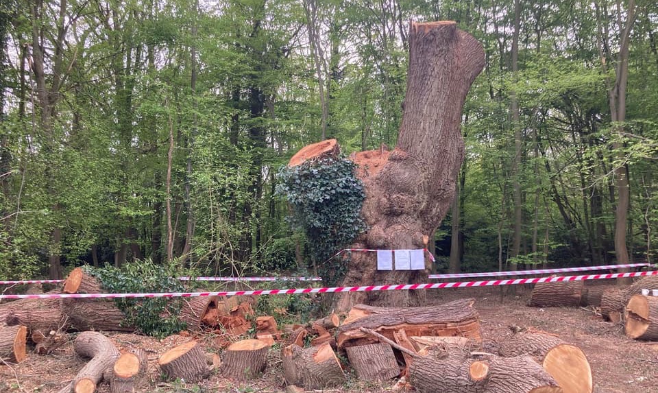 (An ode to the ancient Whitewebbs oak, destroyed mindlessly on 3 April 2025)